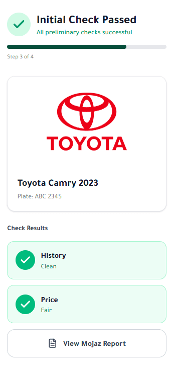 Mojaz vehicle report